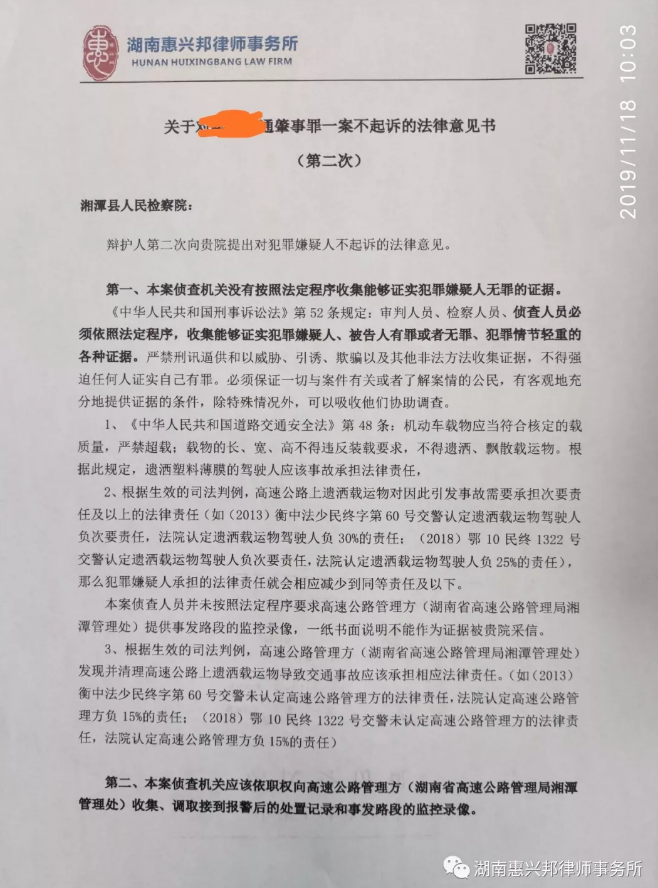 我所代理的交通肇事案兩次退回補充偵查,三次延長審查起訴期限終獲得不起訴決定